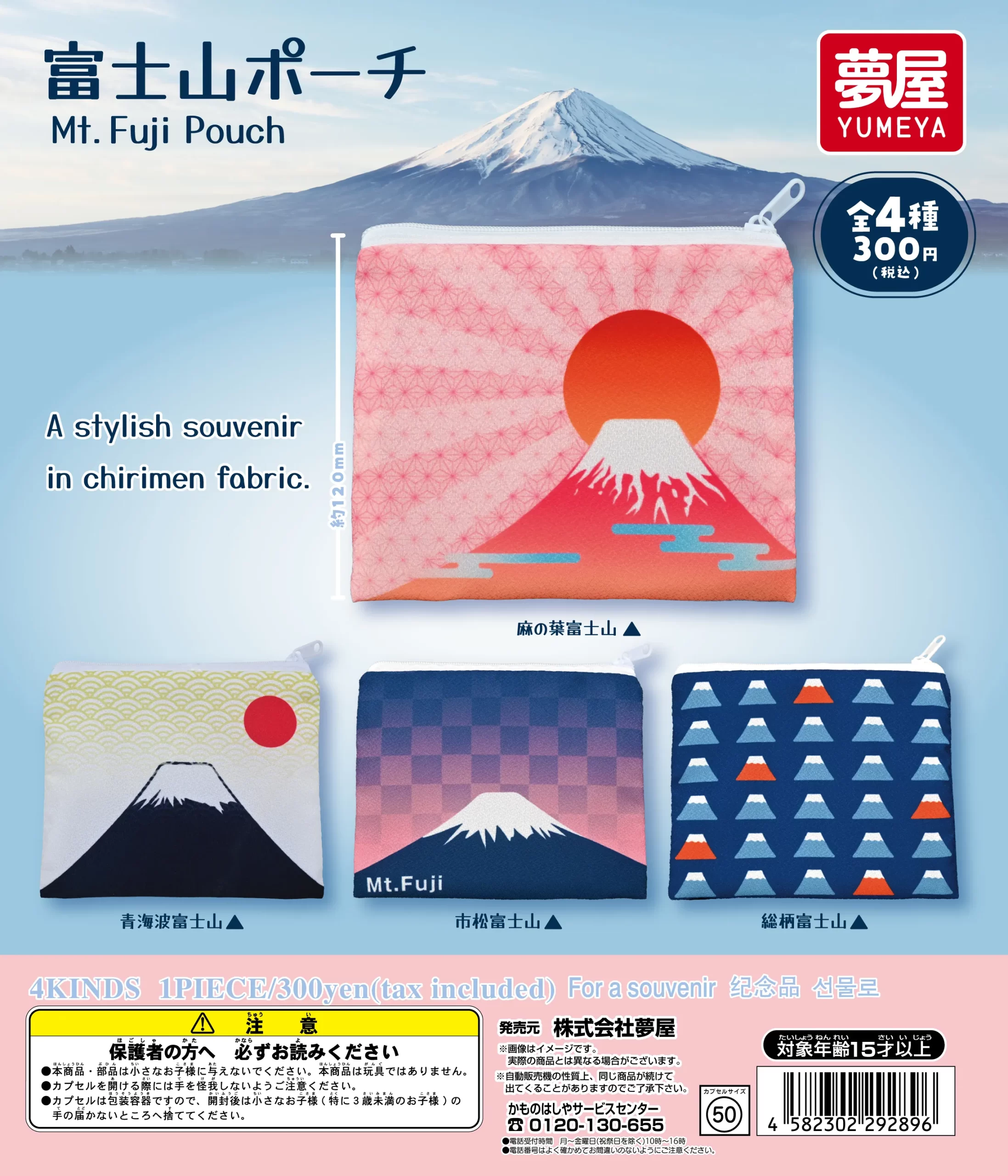 全4種 発売日2025年12月 ーーーーーーーーーーーーーーーーーーーー 観光地として人気の富士山がポーチになりました。 ちりめん素材で実用性がありちょっとしたおでかけにも最適! ーーーーーーーーーーーーーーーーーーーー ガチャガチャ商品 ガチャ自販機商品 発売元:株式会社夢屋 (C)G・H YUMEYA